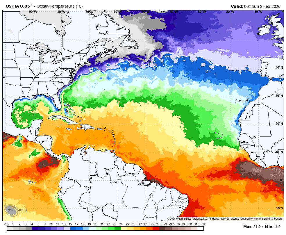 Of all those storms, only Matthew got strong to the south of 22.5°N. So, the impact idea now focuses from Louisiana to the Carolinas, but we can't rule out storms breaking out of the pack up the East Coast or westward to Texas. We are pulling the above-average area closer to the U.S., with below normal conditions in much of the Caribbean. The warmth of the water ups the ante for in-close feedback, something that has become more common in the age of water warming farther to the north. Smaller-in-size, rapid ramp-up systems within 2 days of the coast are what to watch for.