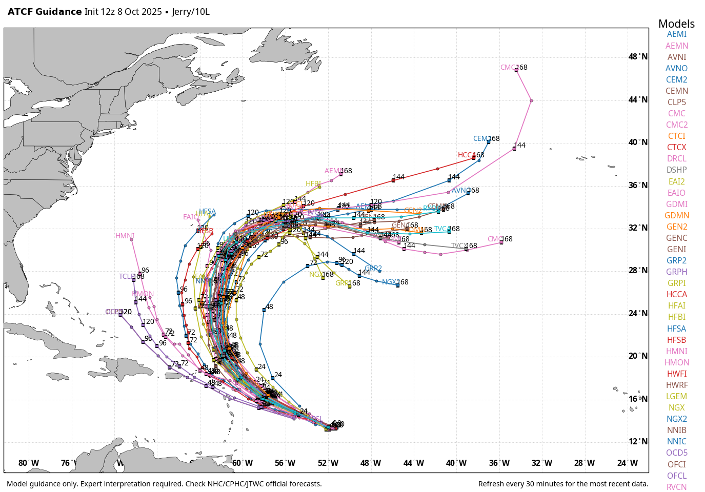 The red area is expected to see more than 50% over the expected average, while the Caribbean green area should see less than 50% of the average. Other areas should see near-average activity.